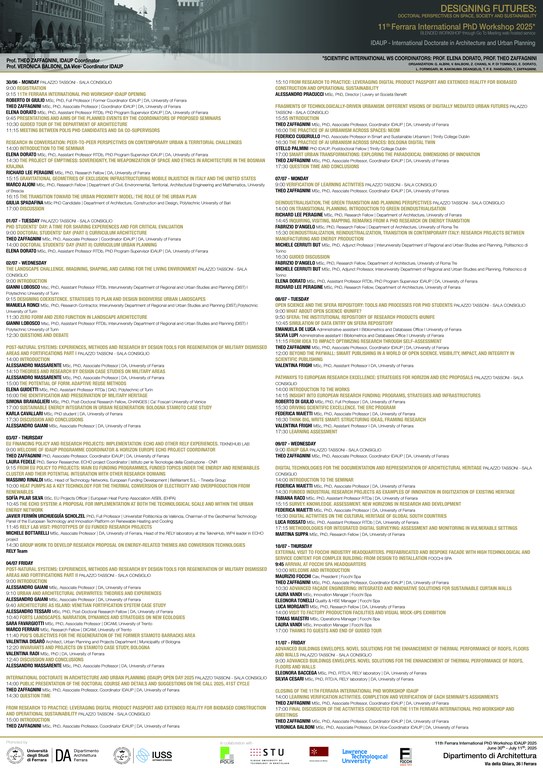 On Monday, 30 June 2025, the 11th edition of the International Doctorate in Architecture and Urban Planning (IDAUP) Workshop at the Department of Architecture, University of Ferrara (UniFe), entitled “DESIGNING FUTURES: Doctoral Perspectives on Space, Society and Sustainability”, will commence.